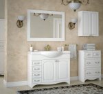 Комод Corozo Классика 55 белый позволит красиво заполнить пространство ванной комнаты в классическом стиле. Напольная конструкция стандартной ширины укомплектована четырьмя выдвижными отделениями – ящиками, которые обеспечивают быстрый доступ и размещение необходимых предметов гигиены или быта. Дизайн модели предусматривает наличие эффектных глянцевых фасадов с рамной фрезеровкой, выполненной в виде обрамления. Декоративным и функциональным элементом фасадной части выступают изящные ручки под бронзу, оформленные эмалевыми вставками с цветочным рисунком.