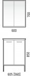 - Зеркало-шкаф (ш/г/в): 600x150x700 мм