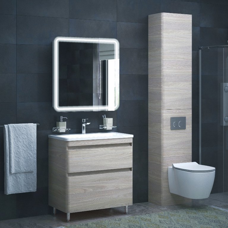 Комплект мебели для ванной комнаты Corozo Алабама 80 Z2 клен экрю имеет стильный дизайн в современном исполнении, построенный на безупречной эргономике и продуманном функциональном наполнении. Напольная тумба с двумя вместительными выдвижными ящиками поставляется вместе с раковиной из искусственного камня, дополняет зону умывания зеркальный шкаф со светодиодной лентой по периметру. Лаконичный образ набора разбавляет текстура светлого дерева.