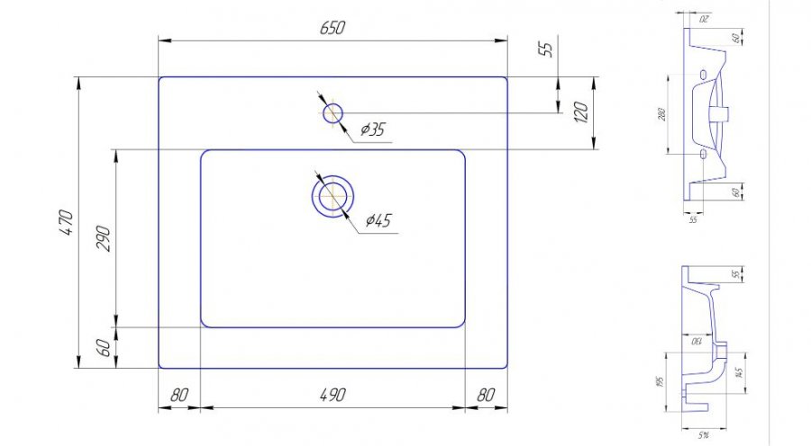 - Раковина Оскар 65 (ш/г/в): 650x470 мм