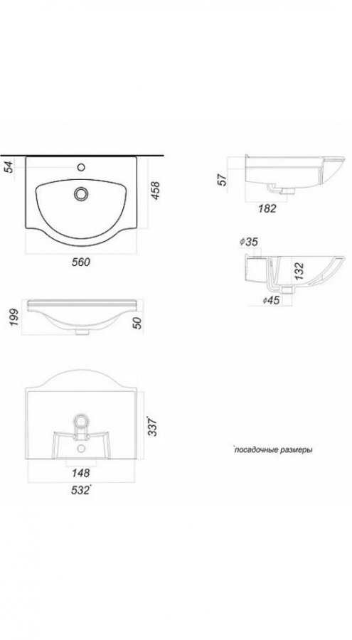 - Раковина Идеал 56 (ш/г/в): 560x458х199 мм