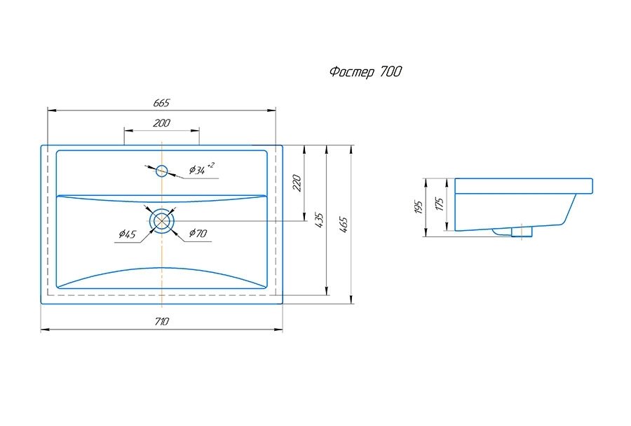 - Раковина Фостер 70 (ш/г/в): 710x465x195 мм