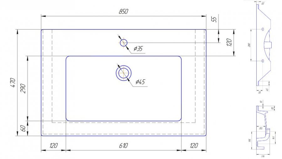 - Раковина Оскар 85 (ш/г/в): 850x470х145 мм